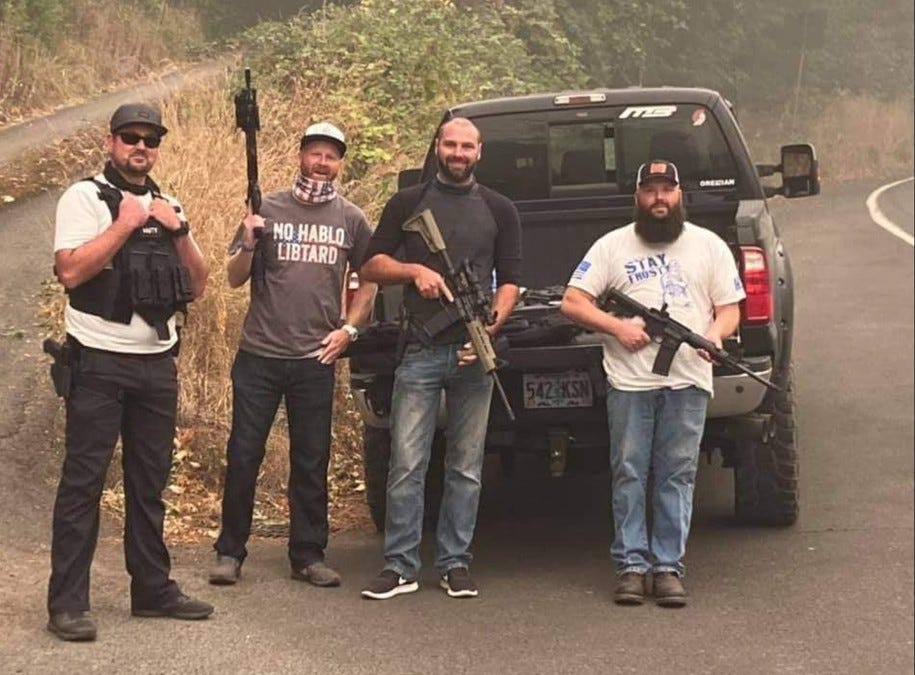 More disturbingly, small groups of armed vigilantes began popping up in short order in rural Oregon, primarily in Clackamas and Multnomah counties, forming ad-hoc “citizen checkpoints” demanding drivers give them identification and interrogating them about their politics. Some of these chased journalists, including an Oregon Public Broadcasting reporter and a photographer on assignment, out of the areas.