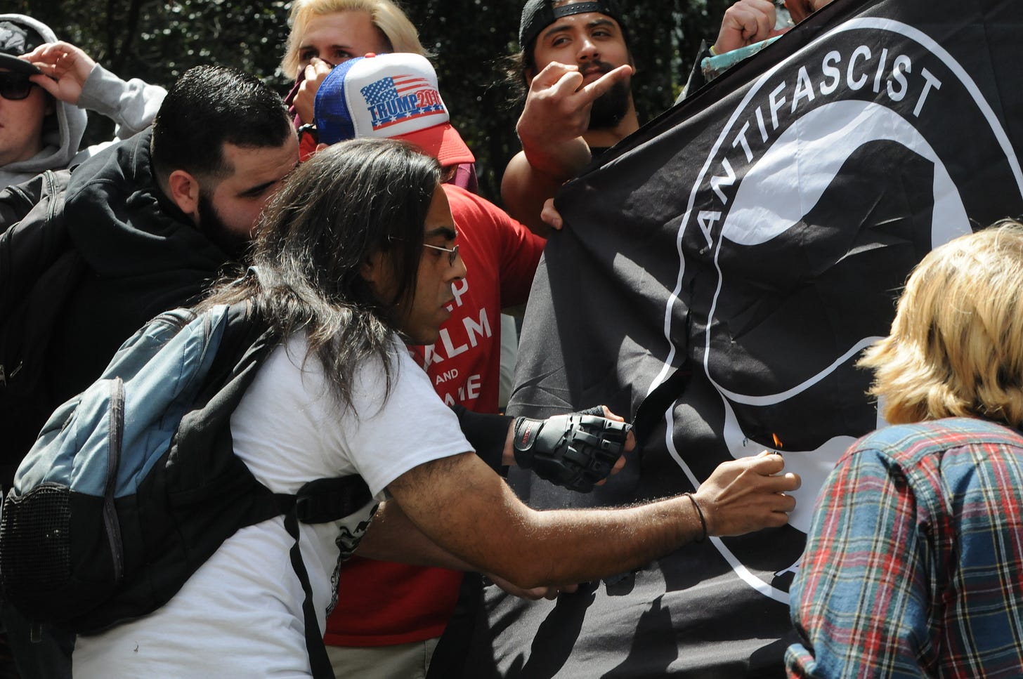 There is no national “Antifa” organization—only small local cooperative groups, all of them officially leaderless—and no national “leaders,” despite anti-Semitic conspiracy theorists’ risibly false claims that George Soros is the man behind it all. Most of all, its operating philosophy is not—contrary to the right’s characterization of the movement—focused on creating violence, but rather on preventing it if possible, particularly violence against vulnerable minorities frequently targeted by right-wing extremists and hate groups. At the same time, unlike other leftist groups, it does not eschew the use of violence to defend those minorities from violence—which is why so many of its members get caught up in street brawls and are regularly seen engaging in violent acts. And it justifies some violent acts as preemptive.