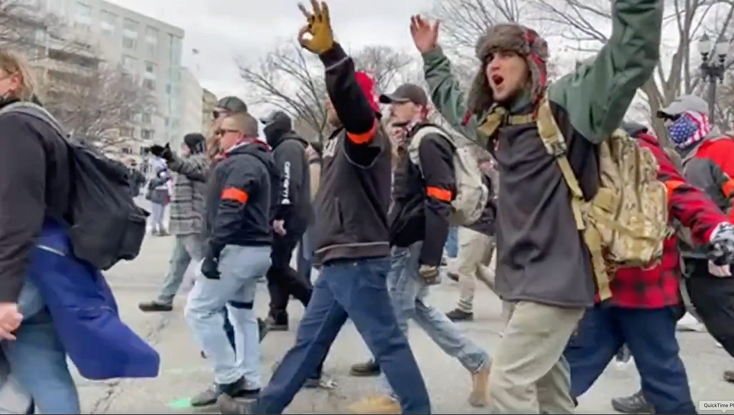 So when the mob gathered on the National Mall on January 6 and headed toward the Capitol, they encountered no resistance from any counterprotesters, much to their surprise. Oath Keepers and Proud Boys alike had been warning each other for weeks to prepare for Antifa or BLM violence. Instead, the only resistance they encountered came from Capitol Police.